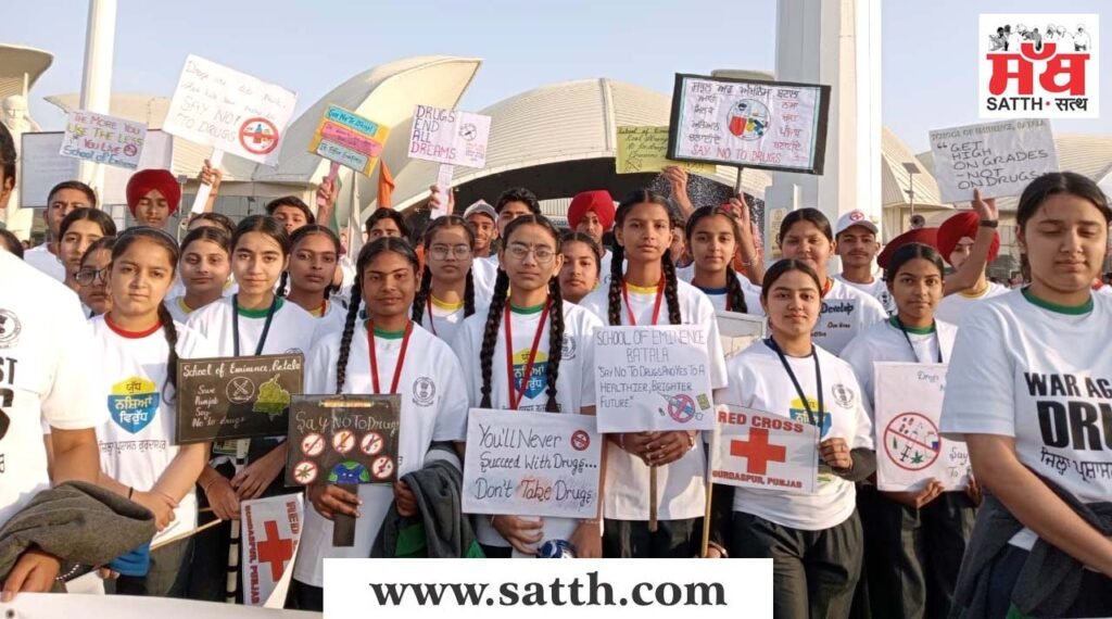 ਸਕੂਲੀ ਵਿਦਿਆਰਥੀ, ਨਸ਼ਾ ਵਿਰੋਧੀ ਮੁਹਿੰਮ ਨੂੰ ਉਤਸ਼ਾਹਿਤ ਕਰਨ ਵਾਲੀਆਂ ਟੀ-ਸ਼ਰਟਾਂ ਪਹਿਨ ਕੇ, ਵੀਰਵਾਰ ਨੂੰ ਕਰਤਾਰਪੁਰ ਸਾਹਿਬ ਲਾਂਘੇ ‘ਤੇ ਪੰਜਾਬ ਦੇ ਰਾਜਪਾਲ ਗੁਲਾਬ ਚੰਦ ਕਟਾਰੀਆ ਦੁਆਰਾ ਸ਼ੁਰੂ ਕੀਤੀ ਗਈ “ਪਦ ਯਾਤਰਾ” ਵਿੱਚ ਹਿੱਸਾ ਲੈਣ ਲਈ ਇਕੱਠੇ ਹੋਏ। ਇਸ ਸਮਾਗਮ ਦਾ ਉਦੇਸ਼ ਨਸ਼ਿਆਂ ਦੀ ਦੁਰਵਰਤੋਂ ਦੇ ਖ਼ਤਰਿਆਂ ਬਾਰੇ ਜਾਗਰੂਕਤਾ ਪੈਦਾ ਕਰਨਾ ਸੀ।