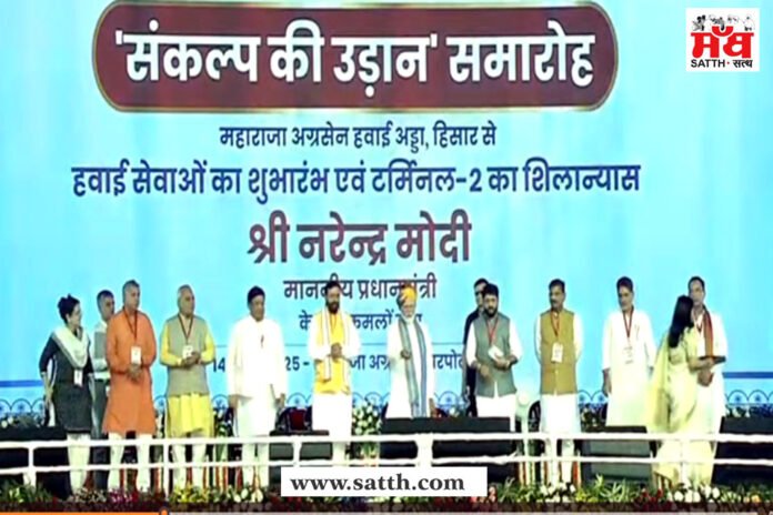 ਇਸ ਤੋਂ ਪਹਿਲਾਂ, ਪ੍ਰਧਾਨ ਮੰਤਰੀ ਨੇ ਅੱਜ ਹਿਸਾਰ ਹਵਾਈ ਅੱਡੇ ‘ਤੇ ਹਿਸਾਰ ਤੋਂ ਅਯੁੱਧਿਆ ਲਈ ਵਪਾਰਕ ਉਡਾਣ ਨੂੰ ਹਰੀ ਝੰਡੀ ਦਿਖਾਈ ਅਤੇ ਟਰਮੀਨਲ-2 ਇਮਾਰਤ ਦਾ ਨੀਂਹ ਪੱਥਰ ਰੱਖਿਆ। 410 ਕਰੋੜ ਰੁਪਏ ਤੋਂ ਵੱਧ ਦੀ ਕੀਮਤ ਵਾਲੇ ਇਸ ਨਵੇਂ ਟਰਮੀਨਲ ਪ੍ਰੋਜੈਕਟ ਵਿੱਚ ਇੱਕ ਆਧੁਨਿਕ ਯਾਤਰੀ ਟਰਮੀਨਲ, ਇੱਕ ਸਮਰਪਿਤ ਕਾਰਗੋ ਸਹੂਲਤ ਅਤੇ ਇੱਕ ਹਵਾਈ ਆਵਾਜਾਈ ਨਿਯੰਤਰਣ ਇਮਾਰਤ ਹੋਵੇਗੀ। ਪ੍ਰਧਾਨ ਮੰਤਰੀ ਨੇ ਕਿਹਾ, 2014 ਤੋਂ ਪਹਿਲਾਂ, ਭਾਰਤ ਵਿੱਚ ਸਿਰਫ਼ 74 ਹਵਾਈ ਅੱਡੇ ਸਨ ਅਤੇ ਹੁਣ ਇਹ ਗਿਣਤੀ 150 ਨੂੰ ਪਾਰ ਕਰ ਗਈ ਹੈ। ਉਨ੍ਹਾਂ ਨੇ ਕੇਂਦਰ ਦੀ ਉਡਾਣ ਯੋਜਨਾ ਦੀ ਸਫਲਤਾ ‘ਤੇ ਵੀ ਚਾਨਣਾ ਪਾਇਆ, ਜਿਸ ਨੇ ਹਜ਼ਾਰਾਂ ਭਾਰਤੀਆਂ ਨੂੰ ਪਹਿਲੀ ਵਾਰ ਉਡਾਣ ਭਰਨ ਦੇ ਯੋਗ ਬਣਾਇਆ ਹੈ।