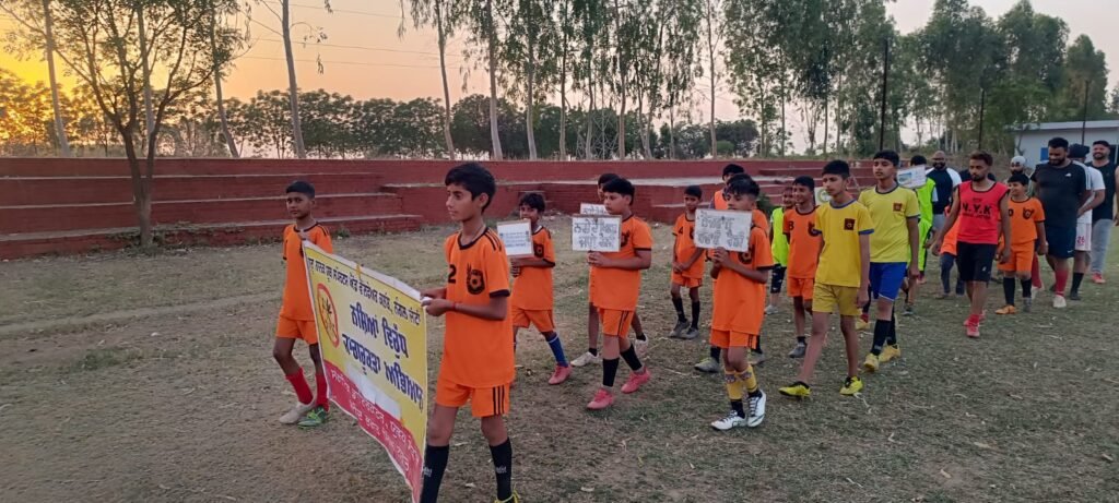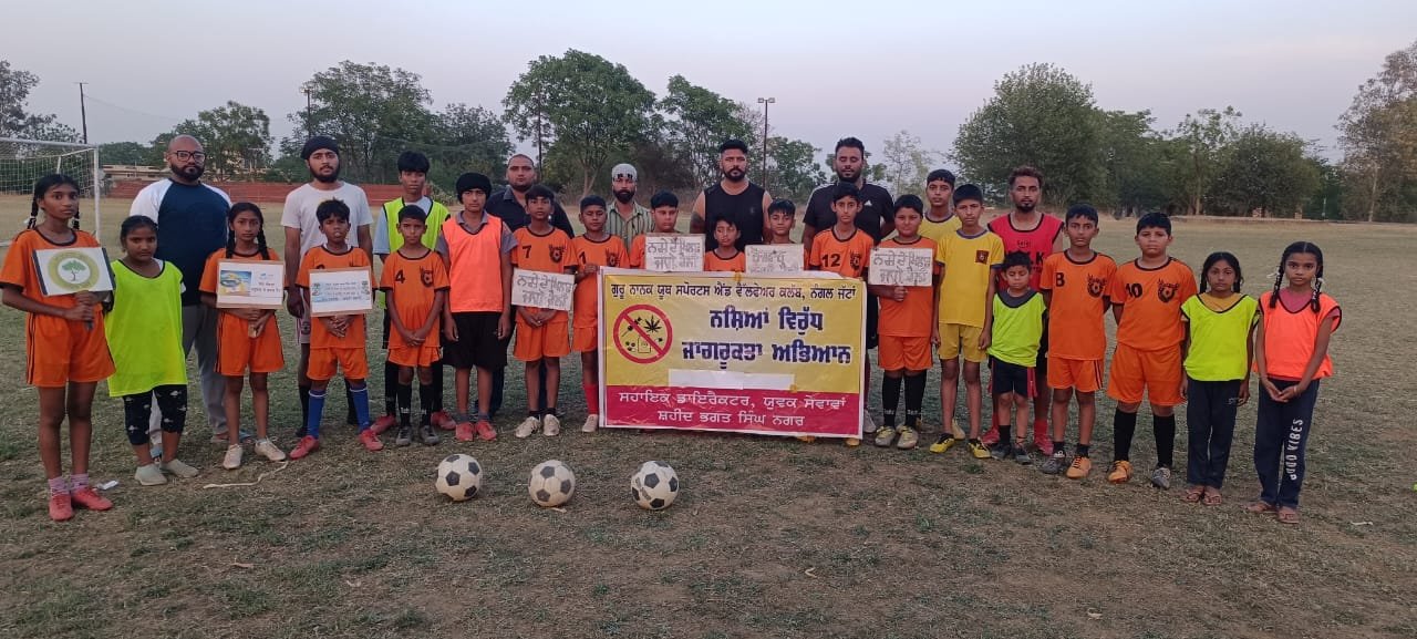 ਡਿਪਟੀ ਕਮਿਸ਼ਨਰ, ਸ਼ਹੀਦ ਭਗਤ ਸਿੰਘ ਨਗਰ ਅੰਕੁਰਜੀਤ ਸਿੰਘ ਦੇ ਦਿਸ਼ਾ-ਨਿਰਦੇਸ਼ਾਂ ਅਤੇ ਜ਼ਿਲ੍ਹਾ ਖੇਡ ਅਫ਼ਸਰ ਵੰਦਨਾ ਚੌਹਾਨ ਦੀਆਂ ਹਦਾਇਤਾਂ ਅਨੁਸਾਰ ਸਹਾਇਕ ਡਾਇਰੈਕਟਰ ਯੁਵਕ ਸੇਵਾਵਾਂ ਵਿਭਾਗ ਸ਼ਹੀਦ ਭਗਤ ਸਿੰਘ ਨਗਰ ਦੇ ਸਹਿਯੋਗ ਨਾਲ ਫੁੱਟਬਾਲ ਕੋਚ ਗੁਰਪ੍ਰੀਤ ਸਿੰਘ ਦੀ ਅਗਵਾਈ ਵਿਚ ‘ਯੁੱਧ ਨਸ਼ਿਆਂ ਵਿਰੁੱਧ’ ਮੁਹਿੰਮ ਤਹਿਤ ਪਿੰਡ ਨੰਗਲ ਜੱਟਾਂ ਵਿਖੇ ਜਾਗਰੂਕਤਾ ਕੈਂਪ ਲਗਾਇਆ ਗਿਆ ਅਤੇ ਰੈਲੀ ਕੱਢੀ ਗਈ। ਕੋਚ ਗੁਰਪ੍ਰੀਤ ਸਿੰਘ ਨੇ ਦੱਸਿਆ ਕਿ ਇਸ ਜਾਗਰੂਕਤਾ ਕੈਂਪ ਤਹਿਤ ਨੌਜਵਾਨਾਂ ਨੂੰ ਗਰਾਊਂਡਾਂ ਨਾਲ਼ ਜੋੜਨ ਅਤੇ ਨਸ਼ਿਆਂ ਤੋਂ ਦੂਰ ਰੱਖਣ ਲਈ ਫੁੱਟਬਾਲ ਸ਼ੈਅ ਮੈਚ ਕਰਵਾਇਆ ਗਿਆ।ਨੰਗਲ ਜੱਟਾਂ ਫੁੱਟਬਾਲ ਕਲੱਬ ਰੈੱਡ ਅਤੇ ਨੰਗਲ ਜੱਟਾਂ ਫੁੱਟਬਾਲ ਕਲੱਬ ਬਲਿਊ ਵਿਚਕਾਰ ਹੋਇਆ ਇਹ ਮੈਚ 2-2 ਗੋਲਾਂ ਨਾਲ ਬਰਾਬਰ ਰਿਹਾ। ਇਸ ਮੌਕੇ ਦੋਵਾਂ ਟੀਮਾਂ ਦੇ ਖਿਡਾਰੀਆਂ ਨੂੰ ਰਿਫਰੈਸ਼ਮੈਂਟ ਵੀ ਦਿੱਤੀ ਗਈ।