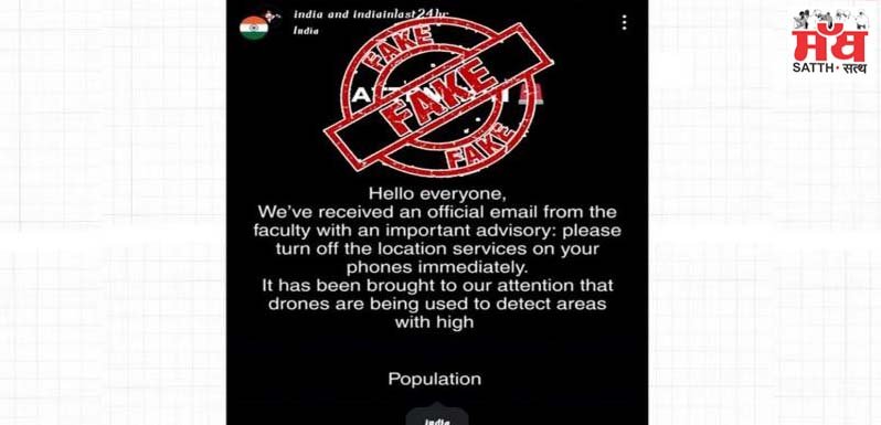 ਪਹਿਲਗਾਮ ਵਿੱਚ ਹੋਏ ਅਤਿਵਾਦੀ ਹਮਲੇ ਦੇ ਬਾਅਦ, ਭਾਰਤੀ ਫ਼ੌਜ ਨੇ ਪਾਕਿਸਤਾਨ ਵਿੱਚ ਅਤਿਵਾਦੀਆਂ ਦੇ ਟਿਕਾਣਿਆਂ ਖਿਲਾਫ ਕਾਰਵਾਈ ਕੀਤੀ ਹੈ। ਇਸ ਦੇ ਨਤੀਜੇ ਵਜੋਂ, ਪਾਕਿਸਤਾਨ ਨੇ ਭਾਰਤ ‘ਤੇ ਲਗਾਤਾਰ ਹਮਲੇ ਕਰਨ ਸ਼ੁਰੂ ਕਰ ਦਿੱਤੇ ਹਨ, ਜਿਨ੍ਹਾਂ ਦਾ ਭਾਰਤੀ ਫ਼ੌਜ ਵਿਰੋਧ ਕਰ ਰਹੀ ਹੈ। ਇਸ ਦੌਰਾਨ, ਸੋਸ਼ਲ ਮੀਡੀਆ ‘ਤੇ ਕੁਝ ਝੂਠੀਆਂ ਖ਼ਬਰਾਂ ਵੀ ਫੈਲ ਰਹੀਆਂ ਹਨ, ਜਿਨ੍ਹਾਂ ਵਿੱਚ ਇੱਕ ਵਿੱਚ ਦਾਅਵਾ ਕੀਤਾ ਗਿਆ ਹੈ ਕਿ ਸਰਕਾਰ ਨੇ ਲੋਕਾਂ ਲਈ ਇੱਕ ਐਡਵਾਈਜ਼ਰੀ ਜਾਰੀ ਕੀਤੀ ਹੈ, ਜਿਸ ਵਿੱਚ ਉਨ੍ਹਾਂ ਨੂੰ ਆਪਣੇ ਫ਼ੋਨਾਂ ਦੀ ਲੋਕੇਸ਼ਨ ਸੇਵਾ ਤੁਰੰਤ ਬੰਦ ਕਰਨ ਲਈ ਕਿਹਾ ਗਿਆ ਹੈ। #PIBFactCheck ਦੇ ਅਨੁਸਾਰ, ਇਹ ਖ਼ਬਰ ਪੂਰੀ ਤਰ੍ਹਾਂ ਝੂਠੀ ਅਤੇ ਬੇਬੁਨਿਆਦ ਹੈ। ਪੀਆਈਬੀ ਨੇ ਉਸ ਝੂਠੀ ਤਸਵੀਰ ਦੀ ਤੱਥ ਜਾਂਚ ਕੀਤੀ ਹੈ ਜਿਸ ਵਿੱਚ ਦੱਸਿਆ ਗਿਆ ਹੈ ਕਿ ਸਰਕਾਰ ਨੇ ਲੋਕਾਂ ਨੂੰ ਈਮੇਲ ਰਾਹੀਂ ਲੋਕੇਸ਼ਨ ਸੇਵਾ ਬੰਦ ਕਰਨ ਦੀ ਸਲਾਹ ਦਿੱਤੀ ਹੈ, ਕਿਉਂਕਿ ਇਸਦੀ ਵਰਤੋਂ ਲੋਕਾਂ ਨੂੰ ਟਰੈਕ ਕਰਨ ਲਈ ਕੀਤੀ ਜਾ ਸਕਦੀ ਹੈ। ਪਰ, ਤੱਥ ਜਾਂਚ ਤੋਂ ਇਹ ਸਾਫ਼ ਹੋਇਆ ਹੈ ਕਿ ਸਰਕਾਰ ਵੱਲੋਂ ਅਜਿਹੀ ਕੋਈ ਸਲਾਹ ਜਾਰੀ ਨਹੀਂ ਕੀਤੀ ਗਈ। ਇਹ ਸਿਰਫ਼ ਇੱਕ ਝੂਠਾ ਦਾਅਵਾ ਹੈ।