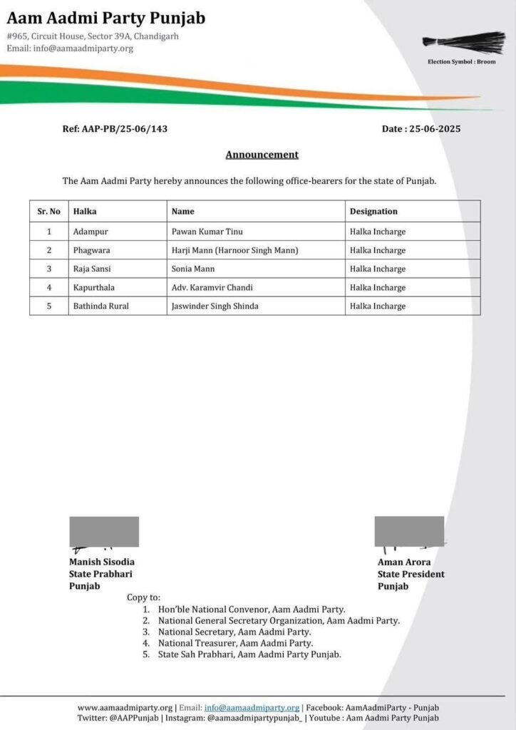 ਆਮ ਆਦਮੀ ਪਾਰਟੀ ਦੀ ਹਾਈਕਮਾਂਡ ਵੱਲੋਂ ਵਿਧਾਨ ਸਭਾ ਹਲਕਾ ਆਦਮਪੁਰ ਤੋਂ ਉੱਘੇ ਬੇਦਾਗ ਸਿਆਸਤਦਾਨ ਸਾਬਕਾ ਹਲਕਾ ਵਿਧਾਇਕ ਆਦਮਪੁਰ ਪਵਨ ਕੁਮਾਰ ਟੀਨੂੰ ਨੂੰ ਆਦਮਪੁਰ ਦਾ ਹਲਕਾ ਇੰਚਾਰਜ ਲਗਾਇਆ ਗਿਆ ਹੈ। ਇੱਥੇ ਵਰਣਯੋਗ ਹੈ ਕਿ ਪਵਨ ਕੁਮਾਰ ਟੀਨੂ ਦੀਆਂ ਸੇਵਾਵਾਂ ਨੂੰ ਦੇਖਦੇ ਹੋਏ ਆਮ ਆਦਮੀ ਪਾਰਟੀ ਵੱਲੋਂ ਕੁਝ ਦਿਨ ਪਹਿਲਾਂ ਉਹਨਾਂ ਨੂੰ ਪੰਜਾਬ ਸਟੇਟ ਖੇਤੀਬਾੜੀ ਡਿਵੈਲਪਮੈਂਟ ਬੈਂਕ ਦੇ ਚੇਅਰਮੈਨ ਬਣਾਇਆ ਗਿਆ ਸੀ। ਹੁਣ ਉਹ ਚੇਅਰਮੈਨ ਦੀਆਂ ਜ਼ਿੰਮੇਵਾਰੀਆਂ ਦੇ ਨਾਲ-ਨਾਲ ਹਲਕਾ ਆਦਮਪੁਰ ਦੇ ਇੰਚਾਰਜ ਦੀਆਂ ਜ਼ਿੰਮੇਵਾਰੀਆਂ ਵੀ ਨਿਭਾਉਣਗੇ। ਇਸ ਮੌਕੇ ਚੇਅਰਮੈਨ ਪਵਨ ਕੁਮਾਰ ਟੀਨੂ ਵਲੋਂ ਅਰਵਿੰਦ ਕੇਜਰੀਵਾਲ ਪੰਜਾਬ ਦੇ ਮੁੱਖ ਮੰਤਰੀ ਭਗਵੰਤ ਸਿੰਘ ਮਾਨ ਅਤੇ ਸਮੂਹ ਲੀਡਰਸ਼ਿਪ ਦਾ ਧੰਨਵਾਦ ਕਰਦਿਆਂ ਕਿਹਾ ਕਿ ਚੇਅਰਮੈਨ ਦੇ ਨਾਲ-ਨਾਲ ਉਨ੍ਹਾਂ ਨੂੰ ਵਿਧਾਨ ਸਭਾ ਹਲਕਾ ਆਦਮਪੁਰ ਦੇ ਇੰਚਾਰਜ ਦੀ ਜ਼ਿੰਮੇਵਾਰੀ ਵੀ ਸੌਂਪੀ ਗਈ ਹੈ, ਉਹ ਉਸ ਨੂੰ ਪੂਰੀ ਤਨਦੇਹੀ ਨਾਲ ਨਿਭਾਉਣਗੇ। ਅਤੇ ਸਾਰਿਆਂ ਨੂੰ ਨਾਲ ਲੈ ਕੇ ਚੱਲਣਗੇ। ਉਹਨਾਂ ਦੇ ਹਲਕਾ ਇੰਚਾਰਜ ਬਣਦੇ ਹੀ ਪੂਰੇ ਆਦਮਪੁਰ ਹਲਕੇ ਵਿੱਚ ਖੁਸ਼ੀ ਦੀ ਲਹਿਰ ਦੌੜ ਗਈ। ਇਸ ਮੌਕੇ ਪਰਮਜੀਤ ਸਿੰਘ ਰਾਜਵੰਸ਼ ਚੇਅਰਮੈਨ ਮਾਰਕੀਟ ਕਮੇਟੀ ਆਦਮਪੁਰ, ਕੁਲਦੀਪ ਸਿੰਘ ਮਿਨਹਾਸ ਕੋਆਰਡੀਨੇਟਰ ਨਸ਼ਾ ਮੁਕਤੀ ਮੋਰਚਾ, ਹਰਕੀਤ ਸਿੰਘ ਨਿੱਝਰ, ਡਾਕਟਰ ਨਿਰਮਲ ਕੌਲ ਸਰਪੰਚ ਹਰੀਪੁਰ, ਸਰਪੰਚ ਲਖਬੀਰ ਸਿੰਘ, ਬਰਜਿੰਦਰ ਸਿੰਘ ਮੌਂਟੀ ਲੰਬੜਦਾਰ, ਜਗਜੀਤ ਜੱਗੀ, ਪ੍ਰਭਦਿਆਲ ਰਾਮਪੁਰ, ਇੰਦਰਜੀਤ ਸਿੰਘ ਸੱਤੋਵਾਲੀ, ਜਸਦਿਆਲ ਭੋਗਪੁਰ, ਸੋਮਨਾਥ ਦੜੌਚ ਟਕਸਾਲੀ ਆਗੂ ਆਮ ਆਦਮੀ ਪਾਰਟੀ ਆਦਮਪੁਰ, ਬਲਜੀਤ ਸਿੰਘ ਲੰਬੜਦਾਰ ਪਧਿਆਣਾ, ਬਲਜੀਤ ਸਿੰਘ ਨਿੱਝਰ, ਸਤਵੰਤ ਵਿਰਕ, ਸੁਖਬੀਰ ਸਿੰਘ ਲੰਬੜਦਾਰ ਚਰਨਜੀਤ ਸ਼ੇਰੀ ਜਸਪਾਲ ਸਿੰਘ ਚੋਮੋ ਕੁਲਦੀਪ ਸਿੰਘ ਜਲਪੋਤ ਅਤੇ ਹੋਰ ਕਈ ਉਨਾਂ ਦੇ ਸਮਰਥਕਾਂ ਵੱਲੋਂ ਪਵਨ ਕੁਮਾਰ ਟੀਨੂ ਨੂੰ ਹਲਕਾ ਇੰਚਾਰਜ ਲੱਗਣ ਤੇ ਵਧਾਈ ਦਿੱਤੀ ਗਈ।