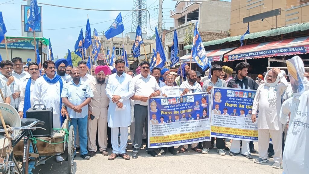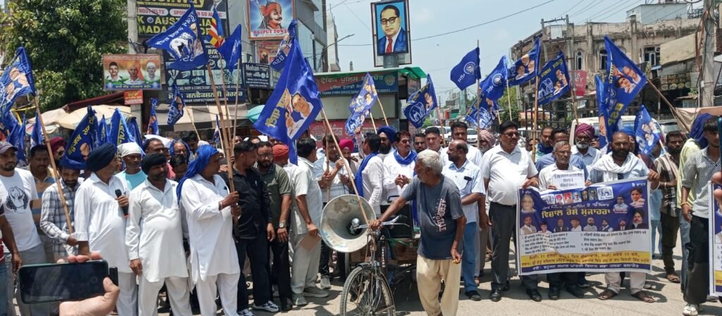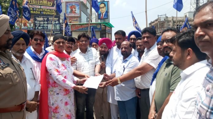 ਬਲਾਚੌਰ 11 ਜੁਲਾਈ (ਜਤਿੰਦਰਪਾਲ ਸਿੰਘ ਕਲੇਰ) ਬਹੁਜਨ ਸਮਾਜ ਪਾਰਟੀ ਪੰਜਾਬ ਦੇ ਪ੍ਰਧਾਨ ਡਾਕਟਰ ਅਵਤਾਰ ਸਿੰਘ ਕਰੀਮਪੁਰੀ ਦੇ ਦਿਸ਼ਾ ਨਿਰਦੇਸ਼ ਹੇਠ ਪੰਜਾਬ ਸੰਭਾਲੋ ਮੁਹਿੰਮ ਦੇ ਤਹਿਤ ਪੰਜਾਬ ਅਤੇ ਕੇਂਦਰ ਸਰਕਾਰ ਦੀਆਂ ਲੋਕ ਵਿਰੋਧੀ ਨੀਤੀਆਂ ਅਤੇ ਸ਼੍ਰੀ ਖੁਰਾਲਗੜ੍ਹ ਸਾਹਿਬ ਖੋਲੇ ਗਏ ਤਿੰਨ ਸ਼ਰਾਬ ਦੀ ਠੇਕਿਆਂ ਅਤੇ ਪੰਜਾਬ ਅੰਦਰ ਹੋ ਰਹੀ ਬਾਬਾ ਸਾਹਿਬ ਡਾਕਟਰ ਭੀਮ ਰਾਓ ਜੀ ਦੇ ਬੁੱਤਾਂ ਦੀ ਬੇਅਦਬੀ ਦੇ ਖਿਲਾਫ ਵਿਸ਼ਾਲ ਰੋਸ ਪ੍ਰਦਰਸ਼ਨ ਚਰਨਜੀਤ ਸੁਮਨ ਪ੍ਰਧਾਨ ਵਿਧਾਨ ਸਭਾ ਹਲਕਾ ਬਲਾਚੌਰ, ਤੇ ਇੰਚਾਰਜ ਭੁਪਿੰਦਰ ਬੇਗਮਪੁਰੀ ਦੀ ਅਗਵਾਈ ਵਿੱਚ ਕੀਤਾ ਗਿਆ। ਇਸ ਰੋਸ ਪ੍ਰਦਰਸ਼ਨ ਵਿੱਚ ਸਾਬਕਾ ਵਿਧਾਇਕ ਐਡਵੋਕੇਟ ਹਰਗੋਪਾਲ ਸਿੰਘ, ਸ੍ਰੀ ਪ੍ਰਵੀਨ ਬੰਗਾ ਜਨਰਲ ਸਕੱਤਰ ਬਹੁਜਨ ਸਮਾਜ ਪਾਰਟੀ, ਸੂਬਾ ਸਕੱਤਰ ਦਿਲਬਾਗ ਚੰਦ ਮਹਿੰਦੀਪੁਰ, ਜਿਲਾ ਪ੍ਰਧਾਨ ਸਰਬਜੀਤ ਸਿੰਘ ਜਾਫਰਪੁਰ, ਜਿਲਾ ਇੰਚਾਰਜ ਦਵਿੰਦਰ ਸੀੰਹਮਰ, ਜਿਲਾ ਜਨਰਲ ਸਕੱਤਰ ਮਨਜੀਤ ਸਿੰਘ ਸੂਦ ਅਤੇ ਸ਼ਹਿਰੀ ਪ੍ਰਧਾਨ ਸੁਰਿੰਦਰ ਸਿੰਘ ਸੀਂਹਮਾਰ ਉਚੇਚੇ ਤੌਰ ਤੇ ਸ਼ਾਮਿਲ ਹੋਏ ਇਸ ਰੋਜ਼ ਰੋਸ ਪ੍ਰਦਰਸ਼ਨ ਵਿੱਚ ਪੰਜਾਬ ਅਤੇ ਸੂਬਾ ਅਤੇ ਕੇਂਦਰ ਸਰਕਾਰ ਦਾ ਪੁਤਲਾ ਫੂਕਿਆ ਗਿਆ ਅਤੇ ਗਵਰਨਰ ਦੇ ਨਾਮ ਤਹਿਸੀਲਦਾਰ ਬਲਾਚੌਰ ਨੂੰ ਇੱਕ ਮੈਂਬਰ ਮੰਗ ਪੱਤਰ ਸੌਂਪਿਆ ਗਿਆ ਇਸ ਰੋਸ ਪ੍ਰਦਰਸ਼ਨ ਵਿੱਚ ਤੇ ਤਹਿਸੀਲ ਬਲਾਚੌਰ ਦੀ ਸਾਰੀ ਬਸਪਾ ਟੀਮ ਨੇ ਪੂਰਨ ਸਹਿਯੋਗ ਦਿੱਤਾ।