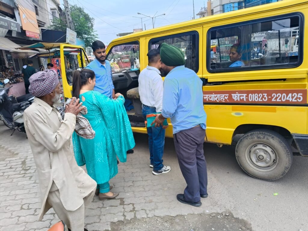 ਸ਼ਹੀਦ ਭਗਤ ਸਿੰਘ ਨਗਰ, 30 ਜੁਲਾਈ(ਜਤਿੰਦਰ ਪਾਲ ਸਿੰਘ ਕਲੇਰ ) ਪੰਜਾਬ ਅਤੇ ਹਰਿਆਣਾ ਹਾਈਕੋਰਟ ਦੇ ਹੁਕਮਾ ਲ ਅਤੇ ਡਿਪਟੀ ਕਮਿਸ਼ਨਰ ਅੰਕੁਰਜੀਤ ਸਿੰਘ ਦੇ ਦਿਸ਼ਾ-ਨਿਰਦੇਸ਼ਾਂ ਅਨੁਸਾਰ ਵਲੋਂ ਟੀਮ ਦੇ ਸਹਿਯੋਗ ਨਾਲ ਸਾਂਝੇ ਤੌਰ ‘ਤੇ ਸੇਫ ਸਕੂਲ ਵਾਹਨ ਪਾਲਿਸੀ ਤਹਿਤ ਨਵਾਂ ਸ਼ਹਿਰ ਵਿੱਚ ਅੱਜ ਸਕੂਲੀ ਵਾਹਨਾਂ ਦੀ ਚੈਕਿੰਗ ਕੀਤੀ ਅਤੇ ਸਕੂਲੀ ਬੱਸਾਂ ਦੇ ਡਰਾਈਵਰਾਂ ਨੂੰ ਸੇਫ ਸਕੂਲ ਵਾਹਨ ਨੀਤੀ ਦੀਆਂ ਸ਼ਰਤਾਂ ਬਾਰੇ ਜਾਣੂ ਕਰਵਾਇਆ।