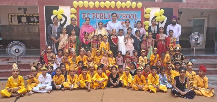 ਕਰਿਆਮ ਰੋਡ ‘ਤੇ ਸਥਿਤ ਕੇ.ਸੀ. ਪਬਲਿਕ ਸਕੂਲ ‘ਚ ਸ੍ਰੀ ਕ੍ਰਿਸਨ ਜਨਮ ਅਸਟਮੀ ਨੂੰ ਸਮਰਪਿਤ ਸਕੂਲ ‘ਚ ਪ੍ਰਿੰਸੀਪਲ ਅਤੇ ਸੀਈਓ (ਗਰੁੱਪ ਕੈਪਟਨ) ਦੀ ਦੇਖ-ਰੇਖ ‘ਚ ਜਨਮ ਅਸ਼ਟਮੀ ਦਾ ਮਹੱਤਵ ਦਰਸ਼ਾਂਦਾ ਪ੍ਰੋਗਰਾਮ ਕਰਵਾਇਆ ਗਿਆ। ਪ੍ਰੋਗਰਾਮ ਕੋਆਰਡੀਨੇਟਰ ਮੋਨਿਕਾ ਰਾਣੀ ਨੇ ਦੱਸਿਆ ਕਿ ਸਕੂਲ ’ਚ ਨਰਸਰੀ ਤੋਂ ਲੈ ਕੇ ਦੂਸਰੀ ਕਲਾਸ ਤੀਕ ਦੇ ਕਰੀਬ 60 ਨੰਨੇ ਮੁੰਨੇ ਸ੍ਰੀ ਰਾਧਾ-ਕ੍ਰਿਸਨ, ਗੋਪੀਆਂ, ਕੰਸ, ਗੋਪਾਲਾਂ ਦਾ ਪਹਿਰਾਵਾ ਪਾ ਕੇ ਹੱਥ ’ਚ ਬੰਸਰੀ, ਮਟਕਾ, ਮੋਰ ਖੰਬ, ਮੁਕੁਟ ਅਤੇ ਹੋਰ ਸਮਾਨ ਲੈ ਕੇ ਪੀਲੇ, ਲਾਲ, ਨੀਲੇ ਰੰਗਾਂ ਦੇ ਕਪੜੇ ਪਾ ਕੇ ਪਹੁੰਚੇ ਹੋਏ ਸਨ। ਨੰਨੋ ਨੇ ਮੁਕੁਟ ਬਣਾਏ, ਮਟਕਿਆਂ ਨੂੰ ਸਜਾਇਆ, ਮੰਚ ਤੇ ਭਜਨ ਅਤੇ ਕਵਿਤਾਵਾਂ ਸੁਣਾਈਆਂ ।
