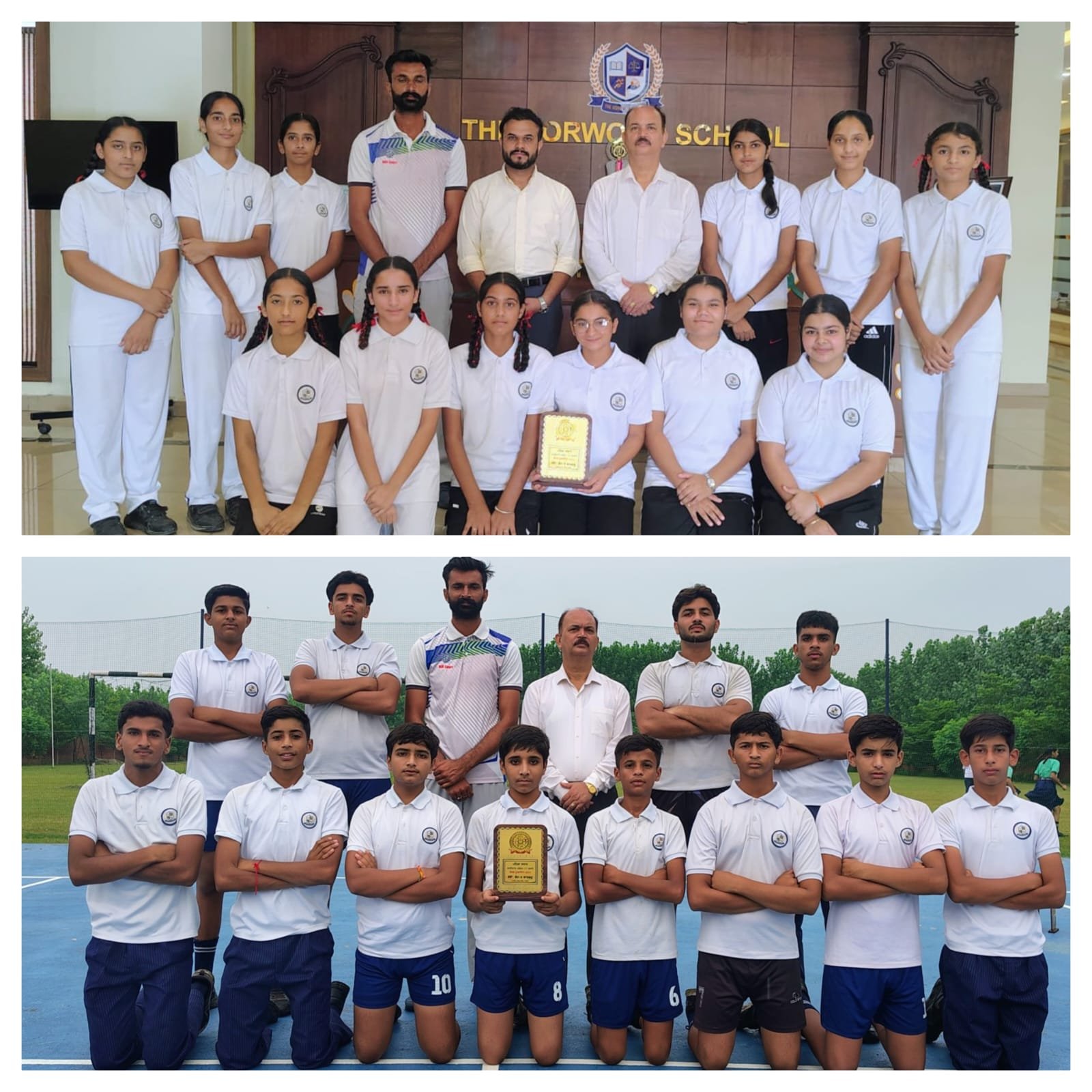ਨਵਾਂਸ਼ਹਿਰ /ਕਾਠਗੜ੍ਹ 31 ਅਗਸਤ (ਜਤਿੰਦਰ ਪਾਲ ਸਿੰਘ ਕਲੇਰ ) ਦ ਨੋਰਵੁੱਡ ਸਕੂਲ ਦੇ ਵਿਦਿਆਰਥੀਆਂ ਨੇ ਪੰਜਾਬ ਸਕੂਲ ਜੋਨਲ ਖੇਡ ਮੁਕਾਬਲਿਆਂ ਵਿੱਚ ਸ਼ਾਨਦਾਰ ਪ੍ਰਦਰਸ਼ਨ ਕਰਕੇ ਆਪਣੇ ਸਕੂਲ ਦਾ ਨਾਮ ਰੌਸ਼ਨ ਕੀਤਾ ਹੈ। ਜਿਸ ਵਿੱਚ ਬੈਡਮਿੰਟਨ(ਲੜਕੇ) ਅੰਡਰ-14 ਤੀਜਾ ਸਥਾਨ, ਬੈਡਮਿੰਟਨ(ਲੜਕੀਆਂ) ਅੰਡਰ-14 ਤੀਜਾ ਸਥਾਨ, ਕ੍ਰਿਕਟ(ਲੜਕੇ) ਅੰਡਰ-14 ਦੂਜਾ ਸਥਾਨ ਤੇ 6 ਖਿਡਾਰੀ ਜਿਲੇ ਲਈ ਚੁਣੇ ਗਏ, ਕ੍ਰਿਕਟ(ਲੜਕੇ) ਅੰਡਰ-17 ਪਹਿਲਾ ਸਥਾਨ ਤੇ 10 ਖਿਡਾਰੀ ਜਿਲੇ ਲਈ ਚੁਣੇ ਗਏ, ਕ੍ਰਿਕਟ(ਲੜਕੇ) ਅੰਡਰ-19 ਤੀਜਾ ਸਥਾਨ ਤੇ 3 ਖਿਡਾਰੀ ਜਿਲੇ ਲਈ ਚੁਣੇ ਗਏ, ਫੁੱਟਬਾਲ(ਲੜਕੇ) ਅੰਡਰ-14 ਪਹਿਲਾ ਸਥਾਨ ਤੇ 10 ਖਿਡਾਰੀ ਜਿਲੇ ਲਈ ਚੁਣੇ ਗਏ, ਫੁੱਟਬਾਲ(ਲੜਕੇ) ਅੰਡਰ-17 ਪਹਿਲਾ ਸਥਾਨ ਤੇ 10 ਖਿਡਾਰੀ ਜਿਲੇ ਲਈ ਚੁਣੇ ਗਏ, ਵਾਲੀਬਾਲ(ਲੜਕੇ) ਅੰਡਰ-14 ਪਹਿਲਾ ਸਥਾਨ ਤੇ 12 ਖਿਡਾਰੀ ਜਿਲੇ ਲਈ ਚੁਣੇ ਗਏ, ਵਾਲੀਬਾਲ(ਲੜਕੀਆਂ) ਅੰਡਰ-14 ਪਹਿਲਾ ਸਥਾਨ ਤੇ 12 ਖਿਡਾਰੀ ਜਿਲੇ ਲਈ ਚੁਣੇ ਗਏ, ਵਾਲੀਬਾਲ(ਲੜਕੇ) ਅੰਡਰ-17 ਪਹਿਲਾ ਸਥਾਨ ਤੇ 10 ਖਿਡਾਰੀ ਜਿਲੇ ਲਈ ਚੁਣੇ ਗਏ, ਵਾਲੀਬਾਲ(ਲੜਕੀਆਂ) ਅੰਡਰ-17 ਪਹਿਲਾ ਸਥਾਨ ਤੇ 10 ਖਿਡਾਰੀ ਜਿਲੇ ਲਈ ਚੁਣੇ ਗਏ, ਵਾਲੀਬਾਲ(ਲੜਕੀਆਂ) ਅੰਡਰ-19 ਪਹਿਲਾ ਸਥਾਨ ਤੇ 12 ਖਿਡਾਰੀ ਜਿਲੇ ਲਈ ਚੁਣੇ ਗਏ, ਬਾਸਕਿਟਬਾਲ(ਲੜਕੀਆਂ) ਅੰਡਰ-14 ਪਹਿਲਾ ਸਥਾਨ ਤੇ 12 ਖਿਡਾਰੀ ਜਿਲੇ ਲਈ ਚੁਣੇ ਗਏ, ਬਾਸਕਿਟਬਾਲ(ਲੜਕੀਆਂ) ਅੰਡਰ-17 ਪਹਿਲਾ ਸਥਾਨ ਤੇ 12 ਖਿਡਾਰੀ ਜਿਲੇ ਲਈ ਚੁਣੇ ਗਏ, ਖੋ-ਖੋ(ਲੜਕੀਆਂ) ਅੰਡਰ-14 ਦੇ 3 ਖਿਡਾਰੀ ਜਿਲੇ ਲਈ ਚੁਣੇ ਗਏ, ਚੈੱਸ(ਲੜਕੇ) ਅੰਡਰ-14 ਪਹਿਲਾ ਸਥਾਨ ਤੇ 3 ਖਿਡਾਰੀ ਜਿਲੇ ਲਈ ਚੁਣੇ ਗਏ, ਚੈੱਸ(ਲੜਕੇ) ਅੰਡਰ-17 ਤੀਜਾ ਸਥਾਨ, ਸਰਕਲ ਕਬੱਡੀ(ਲੜਕੇ) ਅੰਡਰ-14 ਦੂਜਾ ਸਥਾਨ, ਸਰਕਲ ਕਬੱਡੀ(ਲੜਕੀਆਂ) ਅੰਡਰ-14 ਪਹਿਲਾ ਸਥਾਨ ਤੇ 12 ਖਿਡਾਰੀ ਜਿਲੇ ਲਈ ਚੁਣੇ ਗਏ, ਟੈਨਿਸ(ਲੜਕੇ) ਅੰਡਰ-17 ਪਹਿਲਾ ਸਥਾਨ ਤੇ 2 ਖਿਡਾਰੀ ਜਿਲੇ ਲਈ ਚੁਣੇ ਗਏ, ਟੈਨਿਸ(ਲੜਕੀਆਂ) ਅੰਡਰ-14 ਪਹਿਲਾ ਸਥਾਨ ਤੇ 4 ਖਿਡਾਰੀ ਜਿਲੇ ਲਈ ਚੁਣੇ ਗਏ। ਸਕੂਲ ਮੈਨੇਜਮੈਂਟ ਨੇ ਮਾਣ ਮਹਿਸੂਸ ਕਰਦੇ ਹੋਏ ਦੱਸਿਆ ਕਿ ਇਹ ਵਿਦਿਆਰਥੀਆਂ ਤੇ ਕੋਚਿਸ ਦੀ ਮਿਹਨਤ ਦਾ ਹੀ ਨਤੀਜਾ ਹੈ। ਇਸ ਮੌਕੇ ਸਕੂਲ ਮੈਨੇਜਮੈਂਟ ਨੇ ਵਿਦਿਆਰਥੀਆਂ ਤੇ ਕੋਚਿਸ ਨੂੰ ਵਧਾਈਆਂ ਦਿੰਦੇ ਹੋਏ ਭਵਿੱਖ ਵਿੱਚ ਹੋਰ ਵੀ ਵਧੀਆ ਪ੍ਰਦਰਸ਼ਨ ਕਰਨ ਲਈ ਪ੍ਰੇਰਿਤ ਕੀਤਾ।