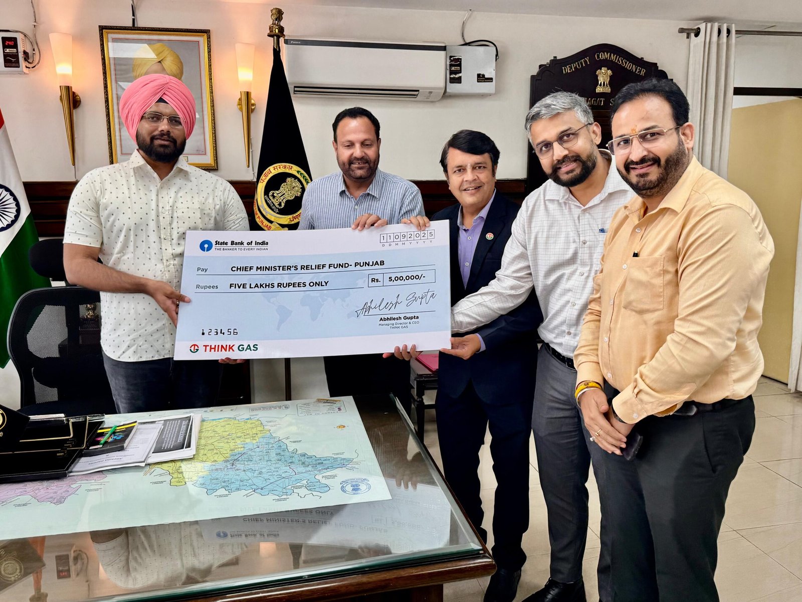ਨਵਾਂਸ਼ਹਿਰ 12 ਸਤੰਬਰ (ਜਤਿੰਦਰ ਪਾਲ ਸਿੰਘ ਕਲੇਰ ) ਸੂਬੇ ਵਿਚ ਆਏ ਹੜ੍ਹਾਂ ਨਾਲ ਪ੍ਰਭਾਵਿਤ ਇਲਾਕਿਆਂ ਅਤੇ ਲੋਕਾਂ ਦੀ ਵੱਖ-ਵੱਖ ਜਥੇਬੰਦੀਆਂ, ਅਦਾਰਿਆਂ ਅਤੇ ਸਮਾਜ ਸੇਵੀ ਸੰਸਥਾਵਾਂ ਵੱਲੋਂ ਕੀਤੀ ਜਾ ਰਹੀ ਮਦਦ ਦੀ ਲੜੀ ਵਿਚ ਅੱਜ ਥਿੰਕ ਗੈਸ ਵੱਲੋਂ ਮੁੱਖ ਮੰਤਰੀ ਰਾਹਤ ਫੰਡ ਲਈ ਪੰਜ ਲੱਖ ਰੁਪਏ ਦਾ ਚੈੱਕ ਡਿਪਟੀ ਕਮਿਸ਼ਨਰ ਸ. ਅੰਕੁਰਜੀਤ ਸਿੰਘ ਨੂੰ ਸੌਂਪਿਆ ਗਿਆ। ਡਿਪਟੀ ਕਮਿਸ਼ਨਰ ਨੇ ਕਿਹਾ ਕਿ ਇਸ ਸੰਕਟ ਦੀ ਘੜੀ ਵਿਚ ਦੇਸ਼-ਵਿਦੇਸ਼ ਤੋਂ ਲੋਕਾਂ ਨੇ ਹੜ੍ਹ ਪੀੜਤਾਂ ਅਤੇ ਪ੍ਰਭਾਵਿਤ ਇਲਾਕਿਆਂ ਲਈ ਅੱਗੇ ਆ ਕੇ ਵੱਡੇ ਪੱਧਰ ‘ਤੇ ਮਦਦ ਕੀਤੀ ਹੈ ਜੋ ਬੇਹੱਦ ਸਲਾਹੁਣਯੋਗ ਹੈ। ਇਸ ਮੌਕੇ ਵਧੀਕ ਡਿਪਟੀ ਕਮਿਸ਼ਨਰ ਰਾਜੀਵ ਵਰਮਾ, ਥਿੰਕ ਗੈਸ ਦੇ ਪੰਜਾਬ ਤੇ ਹਿਮਾਚਲ ਦੇ ਜੋਨਲ ਹੈਡ ਵਿਸ਼ਾਲ ਗਿਰੀ ਗੋਸਵਾਮੀ, ਦਰਪਨ ਕੁਮਾਰ ਚੌਧਰੀ, ਕੰਪਨੀ ਦੇ ਜਲ਼ੰਧਰ ਤੇ ਕਾਂਗੜਾ ਦੇ ਡਿਪਟੀ ਰੀਜਨਲ ਹੈੱਡ ਜੌਹਨੀ ਸ਼ਰਮਾ ਚੈੱਕ ਭੇਟ ਕਰਨ ਵੇਲੇ ਮੌਜੂਦ ਸਨ।
