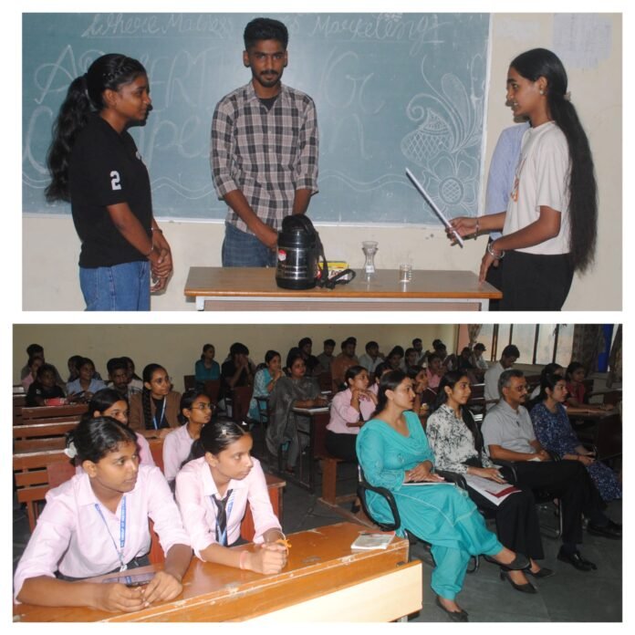 ਕਰਿਆਮ ਰੋਡ ’ਤੇ ਸਥਿਤ ਕੇਸੀਐਸਐਮਸੀਏ ਕਾਲਜ ਦੇ ਬੀਬੀਏ ਅਤੇ ਬੀਕਾੱਮ ਵਿਭਾਗਾਂ ਨੇ ਡਾ. ਵਿਕਾਸ ਕੁਮਾਰ ਦੀ ਨਿਗਰਾਨੀ ਹੇਠ ਸਿਲੇਬਸ ਦੇ ਆਧਾਰ ’ਤੇ ਵਿਦਿਆਰਥੀਆਂ ਦੀ ਇੱਕ ਐਡ-ਓ ਮਾਨਿਆ ਐਡਵਰਟਾਇਜਿੰਗ ਸਬੰਧੀ ਐਕਟੀਵਿਟੀ ਕਰਵਾਈ ਗਈ, ਜਿਸ ’ਚ 6 ਗਰੁੱਪਾਂ ’ਚ 24 ਵਿਦਿਆਰਥੀਆਂ ਨੇ ਹਿੱਸਾ ਲਿਆ। ਵਿਭਾਗ ਮੁੱਖੀ ਸਹਾਇਕ ਪ੍ਰੋਫੈਸਰ ਜਸਦੀਪ ਕੌਰ ਅਤੇ ਸਹਾਇਕ ਪ੍ਰੋਫੈਸਰ ਵਰਸ਼ਾ ਸ਼ਰਮਾ ਨੇ ਦੱਸਿਆ ਕਿ ਵਿਦਿਆਰਥੀਆਂ ਨੇ ਨਾਟਕੀ ਪ੍ਰਦਰਸ਼ਨਾਂ ਰਾਹੀਂ ਸਾਬਣ, ਤੇਲ, ਟੁੱਥਪੇਸਟ, ਸਨਸਕ੍ਰੀਨ, ਅੰਡੇ ਦੇ ਬਾਇਲਰ ਅਤੇ ਸਟੀਲ ਦੀਆਂ ਬੋਤਲਾਂ ਸਮੇਤ ਵੱਖੋ-ਵੱਖ ਕੰਪਨੀਆਂ ਦੇ ਉਤਪਾਦਾਂ ਨੂੰ ਵੇਚਣ ਦੀ ਕਲਾ ਦਾ ਪ੍ਰਦਰਸ਼ਨ ਕੀਤਾ। ਸਾਰਿਆਂ ਨੇ ਮੰਚ ਤੇ ਆਕੇ ਅਪਣੇ ਅਪਣੇ ਪ੍ਰੋਡਕਟ ਨੂੰ ਸੇਲ ਕਰਨ ਦੀ ਅਦਭੁੱਤ ਕਲਾ ਨਾਲ ਪਲਾਸਟਿਕ ਅਤੇ ਰਸਾਇਣਕ ਉਤਪਾਦਾਂ ਤੋਂ ਬਚਣ ਦੀ ਮਹੱਤਤਾ ’ਤੇ ਜ਼ੋਰ ਦਿੰਦੇ ਹੋਏ, ਆਪਣੀ ਸ਼ਾਨਦਾਰ ਵਿਕਰੀ ਦਾ ਪ੍ਰਦਰਸ਼ਨ ਕੀਤਾ। ਉਹਨਾਂ ਦੱਸਿਆ ਕਿ ਸਾਨੂੰ ਸਿਹਤਮੰਦ ਚੀਜਾਂ ਦਾ ਇਸਤੇਮਾਲ ਕਰਨਾ ਚਾਹੀਦਾ ਹੈ। ਡਾ. ਵਿਕਾਸ ਕੁਮਾਰ ਨੇ ਸਮਝਾਇਆ ਕਿ ਕੁਝ ਵੀ ਵੇਚਣ ਦੀ ਕਲਾ ’ਚ ਮੁਹਾਰਤ ਹਾਸਲ ਕਰਨ ਲਈ, ਸਾਨੂੰ ਆਪਣੇ ਵਿਚਾਰਾਂ ਨੂੰ ਵਿਗਿਆਪਣ ’ਚ ਬਦਲਣਾ ਚਾਹੀਦਾ ਹੈ। ਕਈ ਵਾਰ, ਇੱਕ ਵਿਅਕਤੀ ਦਾ ਵਿਚਾਰ ਸਿਰਫ਼ ਇੱਕ ਵਿਅਕਤੀ ਨਹੀਂ, ਲੱਖਾਂ ਲੋਕਾਂ ਤੱਕ ਪੁੱਜਦਾ ਹੈ। ਵਿਗਿਆਪਣ ਇੱਕ ਕਲਾ ਹੈ, ਜੋ ਮਨੋਵਿਗਿਆਨਕ ਅਤੇ ਵਿਗਿਆਨਕ ਦੋਵਾਂ ਤਰੀਕਿਆਂ ਦੀ ਵਰਤੋਂ ਕਰਦੀ ਹੈ। ਵਿਗਿਆਪਣਾਂ ਨੂੰ ਖਪਤਕਾਰਾਂ ਦੀਆਂ ਇੱਛਾਵਾਂ ਨੂੰ ਪੂਰਾ ਕਰਨਾ ਚਾਹੀਦਾ ਹੈ ਅਤੇ ਦ੍ਰਿਸ਼ਟੀਗਤ ਤੌਰ ’ਤੇ ਆਕਰਸ਼ਕ ਹੋਣਾ ਚਾਹੀਦਾ ਹੈ। ਮੰਚ ਸੰਚਾਲਨ ਸਾਰਿਕਾ ਅਤੇ ਆਵਿਦਾ ਨੇ ਬਾਖੂਵੀ ਕੀਤਾ। ਮੌਕੇ ’ਤੇ ਸਹਾਇਕ ਪ੍ਰੋਫੈਸਰ ਪ੍ਰਭਜੋਤ ਕੌਰ, ਨਿਸ਼ਾ, ਸੁਖਵਿੰਦਰ ਸਿੰਘ, ਵਿਪਨ ਕੁਮਾਰ ਹਾਜ਼ਰ ਰਹੇ।