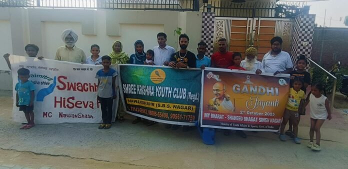 ਨਵਾਂਸ਼ਹਿਰ, 3 ਅਕਤੂਬਰ(ਜਤਿੰਦਰ ਪਾਲ ਸਿੰਘ ਕਲੇਰ ) ਸ਼੍ਰੀ ਕ੍ਰਿਸ਼ਨਾ ਯੂਥ ਕਲੱਬ (ਰਜਿ.) ਵੱਲੋਂ ਰਾਸ਼ਟਰਪਿਤਾ ਮਹਾਤਮਾ ਗਾਂਧੀ ਦੀ ਜਯੰਤੀ ਦੇ ਪਾਵਨ ਅਵਸਰ ’ਤੇ ਪੋਧਾਰੋਪਨ ਤੇ ਸਫ਼ਾਈ ਜਾਗਰੂਕਤਾ ਅਭਿਆਨ ਦਾ ਆਯੋਜਨ ਕੀਤਾ ਗਿਆ। ਇਸ ਤਹਿਤ ਪਿੰਡ ਬੇਗਮਪੁਰ ਅਤੇ ਫੋਕਲ ਪਾਇੰਟ ਨਵਾਂਸ਼ਹਿਰ ’ਚ ਖ਼ਾਸ ਗਤੀਵਿਧੀਆਂ ਕਰਵਾਈਆਂ ਗਈਆਂ। ਕਲੱਬ ਨੇ ਇਸ ਪਹਿਲ ਰਾਹੀਂ ਸਮਾਜ ਨੂੰ ਵਾਤਾਵਰਨ ਸੰਭਾਲ ਦਾ ਮਜ਼ਬੂਤ ਅਤੇ ਪ੍ਰੇਰਣਾਦਾਇਕ ਸੰਦੇਸ਼ ਦਿੱਤਾ। ਇਹ ਪ੍ਰੋਗਰਾਮ ਯੁਵਾ ਕਾਰਜਕ੍ਰਮ ਅਤੇ ਖੇਡ ਮੰਤਰਾਲਾ, ਭਾਰਤ ਸਰਕਾਰ ਦੇ ਦਿਸ਼ਾ-ਨਿਰਦੇਸ਼ਾਂ ਹੇਠ, ਸਰਕਾਰ ਦੀ ਯੁਵਾਵਾਂ ਨੂੰ ਰਾਸ਼ਟਰ-ਨਿਰਮਾਣ ਨਾਲ ਜੋੜਣ ਵਾਲੀ ਪਹਿਲ ‘ਮੇਰਾ ਯੁਵਾ ਭਾਰਤ’ ਸ਼ਹੀਦ ਭਗਤ ਸਿੰਘ ਨਗਰ ਦੇ ਸਹਿਯੋਗ ਨਾਲ ਆਯੋਜਿਤ ਕੀਤਾ ਗਿਆ। ਕਲੱਬ ਨੇ ਇਸ ਮੌਕੇ ਗਾਂਧੀ ਜੀ ਦੇ ਮੁੱਲਾਂ – ਸੇਵਾ, ਸਾਦਗੀ ਅਤੇ ਸਫ਼ਾਈ – ਨੂੰ ਅਮਲੀ ਰੂਪ ਦੇਣ ਦਾ ਸੰਕਲਪ ਲਿਆ।