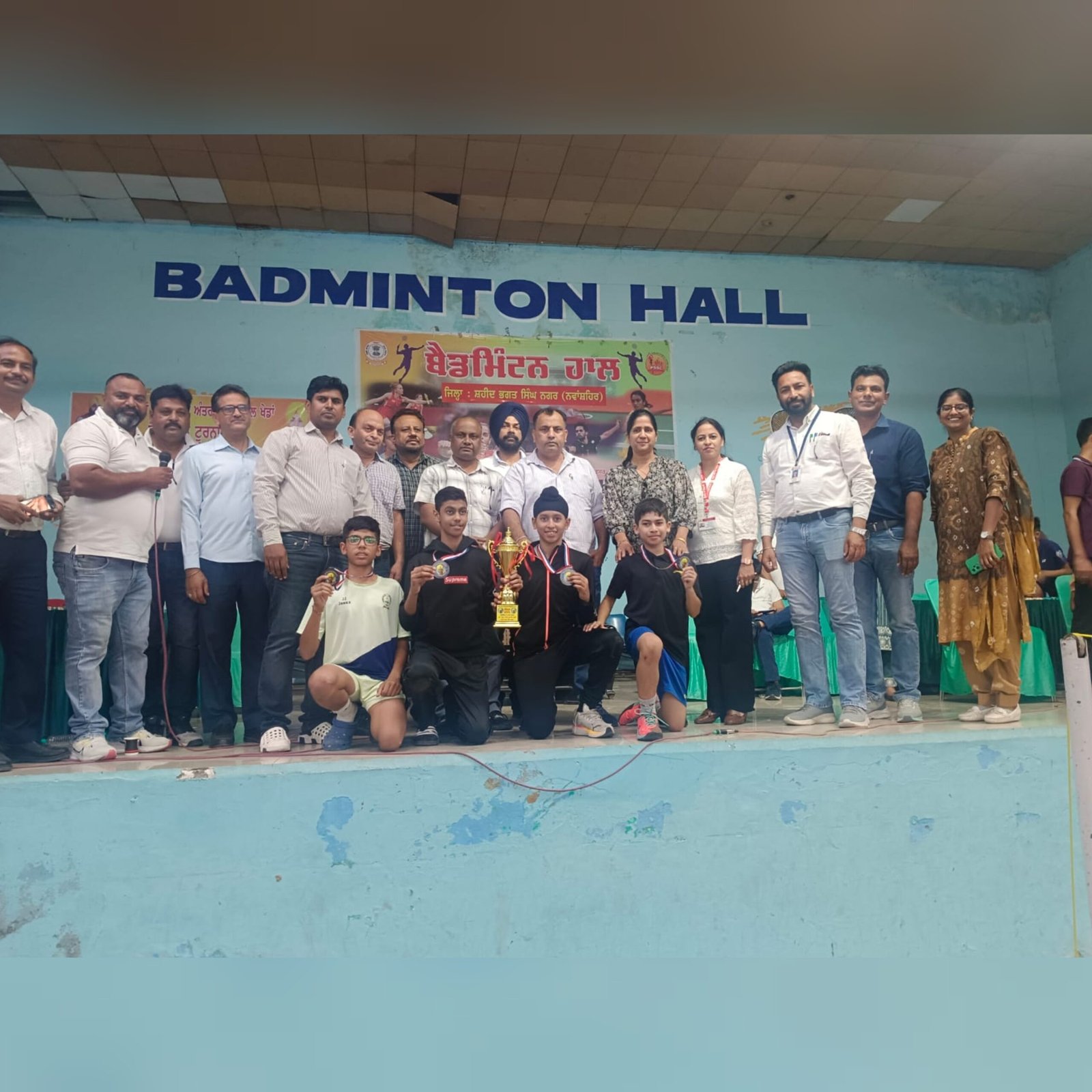 ਨਵਾਂਸ਼ਹਿਰ, 18 ਅਕਤੂਬਰ(ਜਤਿੰਦਰ ਪਾਲ ਸਿੰਘ ਕਲੇਰ ) ਜਿਲ੍ਹਾ ਸ਼ਹੀਦ ਭਗਤ ਸਿੰਘ ਨਗਰ ਵਿੱਚ 69ਵੀਆਂ ਪੰਜਾਬ ਰਾਜ ਅੰਤਰ ਜਿਲ੍ਹਾ ਸਕੂਲ਼ ਖੇਡਾਂ ਤਹਿਤ ਬੈਡਮਿੰਟਨ (ਲੜਕੇ 14 ਸਾਲ) ਦਾ ਟੂਰਨਾਮੈਂਟ ਜਿਲ੍ਹਾ ਸਿੱਖਿਆ ਅਫਸਰ(ਸੈ.ਸਿ) ਅਨੀਤਾ ਸ਼ਰਮਾ , ਉਪ ਜਿਲ੍ਹਾ ਸਿੱਖਿਆ ਅਫਸਰ(ਸੈ.ਸਿ) ਲਖਵੀਰ ਸਿੰਘ ਅਤੇ ਦਵਿੰਦਰ ਕੌਰ ਜਿਲ੍ਹਾ ਖੇਡ ਕੋਆਰਡੀਨੇਟਰ ਦੀ ਅਗਵਾਈ ਵਿੱਚ ਇੰਡੋਰ ਸਟੇਡੀਅਮ ਨਵਾਂਸਹਿਰ ਵਿਖੇ ਸਮਾਪਤ ਹੋਇਆ ਜਿਸ ਵਿੱਚ ਜ਼ਿਲਾ ਲੁਧਿਆਣਾ ਚੈਪੀਅਨ ਬਣਿਆ।