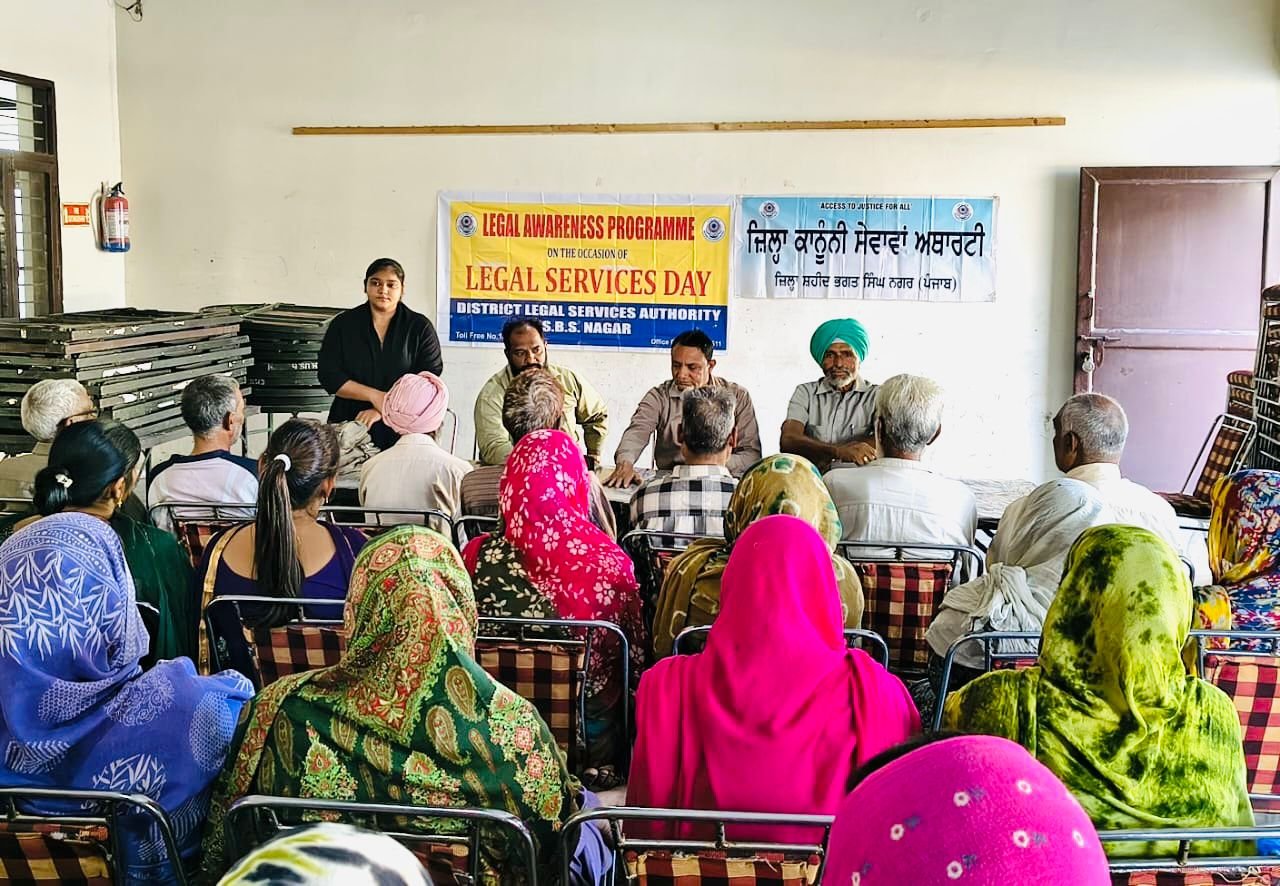 ਨਵਾਂਸ਼ਹਿਰ 9 ਨਵੰਬਰ (ਜਤਿੰਦਰ ਪਾਲ ਸਿੰਘ ਕਲੇਰ ) ਪੰਜਾਬ ਰਾਜ ਕਾਨੂੰਨੀ ਸੇਵਾਵਾਂ ਅਥਾਰਟੀ ਦੀਆਂ ਹਦਾਇਤਾਂ ਅਨੁਸਾਰ ਜਿਲ੍ਹਾ ਅਤੇ ਸੈਸ਼ਨ ਜੱਜ ਸ਼ਹੀਦ ਭਗਤ ਸਿੰਘ ਨਗਰ ਸ੍ਰੀਮਤੀ ਪ੍ਰਿਆ ਸੂਦ ਅਤੇ ਸਿਵਲ ਜੱਜ (ਸੀਨੀਅਰ ਡੀਵੀਜ਼ਨ)/ਸੀ.ਜੇ.ਐਮ-ਕਮ-ਸਕੱਤਰ ਜ਼ਿਲ੍ਹਾ ਕਾਨੂੰਨੀ ਸੇਵਾਵਾਂ ਅਥਾਰਟੀ ਡਾ. ਅਮਨਦੀਪ ਦੇ ਨਿਰਦੇਸ਼ਾਂ ਤਹਿਤ ਜ਼ਿਲ੍ਹਾ ਕਾਨੂੰਨੀ ਸੇਵਾਵਾਂ ਅਥਾਰਟੀ ਵੱਲੋ ਕਾਨੂੰਨੀ ਸੇਵਾਵਾਂ ਦਿਵਸ ਮੌਕੇ ਤੇ ਕਮਿਊਨਿਟੀ ਹਾਲ ਉਸਮਾਨਪੁਰ ਵਿਖੇ ‘ਕਾਨੂੰਨੀ ਜਾਗਰੂਕਤਾ ਸੈਮੀਨਾਰ ਅਤੇ ਕੈਂਪ’ ਆਯੋਜਿਤ ਕੀਤਾ ਗਿਆ। ਇਸ ਮੌਕੇ ਤੇ ਅਥਾਰਟੀ ਦੇ ਪੈਰਾ ਲੀਗਲ ਵਲੰਟੀਅਰ ਬਲਦੇਵ ਭਾਰਤੀ ਨੇ ‘ਕਾਨੂੰਨੀ ਸੇਵਾਵਾਂ ਦਿਵਸ’ ਅਤੇ ‘ਕਾਨੂੰਨੀ ਸੇਵਾਵਾਂ ਅਥਾਰਟੀ ਐਕਟ’ ਦੀ ਸਥਾਪਨਾ ਬਾਰੇ ਜਾਣਕਾਰੀ ਦਿੰਦਿਆਂ ਦੱਸਿਆ ਕਿ ਅਥਾਰਟੀ ਵੱਲੋਂ ਆਰਥਿਕ ਤੌਰ ਤੇ ਕਮਜ਼ੋਰ ਲੋੜਵੰਦਾਂ ਨੂੰ ਅਨਿਆਂ ਦੇ ਖਿਲਾਫ਼ ਮੁਫ਼ਤ ਕਾਨੂੰਨੀ ਸਹਾਇਤਾ ਪ੍ਰਦਾਨ ਕੀਤੀ ਜਾਂਦੀ ਹੈ ਤਾਂ ਕਿ ਕੋਈ ਵੀ ਗਰੀਬ ਨਾਗਰਿਕ ਨਿਆਂ ਪ੍ਰਾਪਤੀ ਤੋਂ ਵਾਂਝਾ ਨਾ ਰਹਿ ਜਾਵੇ। ਮੁਫ਼ਤ ਕਾਨੂੰਨੀ ਸਹਾਇਤਾ ਵਿੱਚ ਵਕੀਲਾਂ ਦੀਆਂ ਸੇਵਾਵਾਂ ਮੁਫਤ ਪ੍ਰਦਾਨ ਕੀਤੀਆਂ ਜਾਂਦੀਆਂ ਹਨ। ਮੁਫ਼ਤ ਕਾਨੂੰਨੀ ਸੇਵਾਵਾਂ ਲਈ ਟੋਲ ਫਰੀ ਨੰਬਰ- 15100 ਵੀ ਜਾਰੀ ਕੀਤਾ ਗਿਆ ਹੈ।