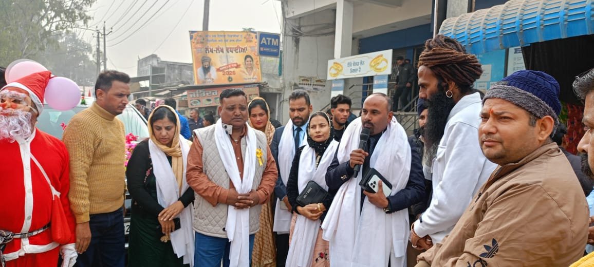 ਨਵਾਂਸ਼ਹਿਰ /ਕਾਠਗੜ੍ਹ, 19 ਦਸੰਬਰ ( ਜਤਿੰਦਰ ਪਾਲ ਸਿੰਘ ਕਲੇਰ ) ਕ੍ਰਿਸਮਿਸ ਦੇ ਪਵਿੱਤਰ ਦਿਹਾੜੇ ਦੇ ਸਬੰਧ ਅੱਜ ਕ੍ਰਿਰਸਿਚਨ ਭਾਈਚਾਰੇ ਵਲੋਂ ਪਿੰਡ ਚਾਹਲ ਦੀ ਚਰਚ ਦੇ ਮੁੱਖ ਪਾਸਟਰ ਪਾਦਰੀ ਸੁੱਖਵਿੰਦਰ ਦੀ ਦੇਖ ਰੇਖ ਹੇਠ ਇਕ ਵਿਸ਼ਾਲ ਸ਼ੋਭਾ ਕੱਢੀ ਗਈ। ਪਿੰਡ ਚਾਹਲਾਂ ਵਿਖੇ ਸਥਿਤ ਚਰਚ ਤੋਂ ਸ਼ੁਰੂ ਹੋਈ ਸ਼ੋਭਾ ਯਾਤਰਾ ਜਦੋਂ ਕਾਠਗੜ੍ਹ ਦੀ ਮੇਨ ਮਾਰਕੀਟ ਪਹੁੰਚੀ ਤਾਂ ਸਮਾਜ ਸੇਵੀ ਸੇਵਾਦਾਰ ਸਾਂਈ ਕਾਲੇ ਸ਼ਾਹ, ਮਾਰਕੀਟ ਪ੍ਰਧਾਨ ਰਾਜ ਕੁਮਾਰ ਆਨੰਦ ਅਤੇ ਸਮੂਹ ਦੁਕਾਨਦਾਰਾਂ ਵਲੋਂ ਸ਼ੋਭਾ ਯਾਤਰਾ ਦਾ ਜ਼ੋਰਦਾਰ ਸਵਾਗਤ ਕੀਤਾ ਗਿਆ। ਇਸ ਮੌਕੇ ਸੇਵਾਦਾਰ ਸਾਂਈ ਕਾਲੇਸ਼ਾਹ ਅਤੇ ਕਾਠਗੜ੍ਹ ਦੇ ਮੋਹਤਬਰਾਂ, ਦੁਕਾਨਦਾਰਾਂ ਨੇ ਪਾਸਟਰ ਸੁੱਖਵਿੰਦਰ ਅਤੇ ਹੋਰ ਲੋਕਾਂ ਨੂੰ ਸਰੋਪੇ ਭੇਂਟ ਕੀਤੇ ਗਏ। ਪਾਸਟਰ ਸੁੱਖਵਿੰਦਰ ਨੇ ਕਿਹਾ ਕਿ ਅਸੀਂ ਸਾਰੇ ਹੀ ਇਕ ਮਾਲਕ ਦੀ ਸੰਤਾਨ ਹਾਂ ਭਾਵੇਂ ਸਾਡੇ ਧਰਮ ਅਲੱਗ-ਅਲੱਗ ਹਨ। ਉਹਨਾਂ ਕਿਹਾ ਕਿ ਸਾਨੂੰ ਭਗਵਾਨ ਯਿਸੂ ਮਸੀਹ ਜੀ ਵਲੋਂ ਦਰਸਾਏ ਮਾਰਗ ‘ਤੇ ਚੱਲ ਕੇ ਆਪਣਾ ਜੀਵਨ ਸਫਲਾ ਕਰਨਾ ਚਾਹੀਦਾ ਹੈ ਅਤੇ ਸਾਨੂੰ ਸੱਭ ਨੂੰ ਰਲਮਿਲ ਕੇ ਸਮਾਜ ਵਿਚ ਰਹਿਣਾ ਚਾਹੀਦਾ ਹੈ। ਇਸ ਸ਼ੋਭਾ ਯਾਤਰਾ ਵਿਚ ਸੁੰਦਰ ਪਾਲਕੀ ਦੇ ਪਿੱਛੇ ਪਿੱਛੇ ਭਜਨ ਕੀਰਤਨ ਮੰਡਲੀ ਤੇ ਸ਼ਰਧਾਲੂ ਪ੍ਰਭੂ ਯਿਸੂ ਮਸੀਹ ਜੀ ਦਾ ਗੁਨਗਾਨ ਕਰ ਰਹੇ ਸਨ। ਸ਼ੋਭਾ ਯਾਤਰਾ ਵਿਚ ਸਾਂਤਾਕਲਾਜ ਅਤੇ ਉਨ੍ਹਾਂ ਦੇ ਨਾਲ ਛੋਟੇ ਛੋਟੇ ਬੱਚੇ ਸ਼ਾਨਦਾਰ ਸੁੰਦਰ ਸੁੰਦਰ ਕੱਪੜੇ ਪਾ ਕੇ ਸਜੇ ਹੋਏ ਦਿਖਾਈ ਦੇ ਰਹੇ ਸਨ।